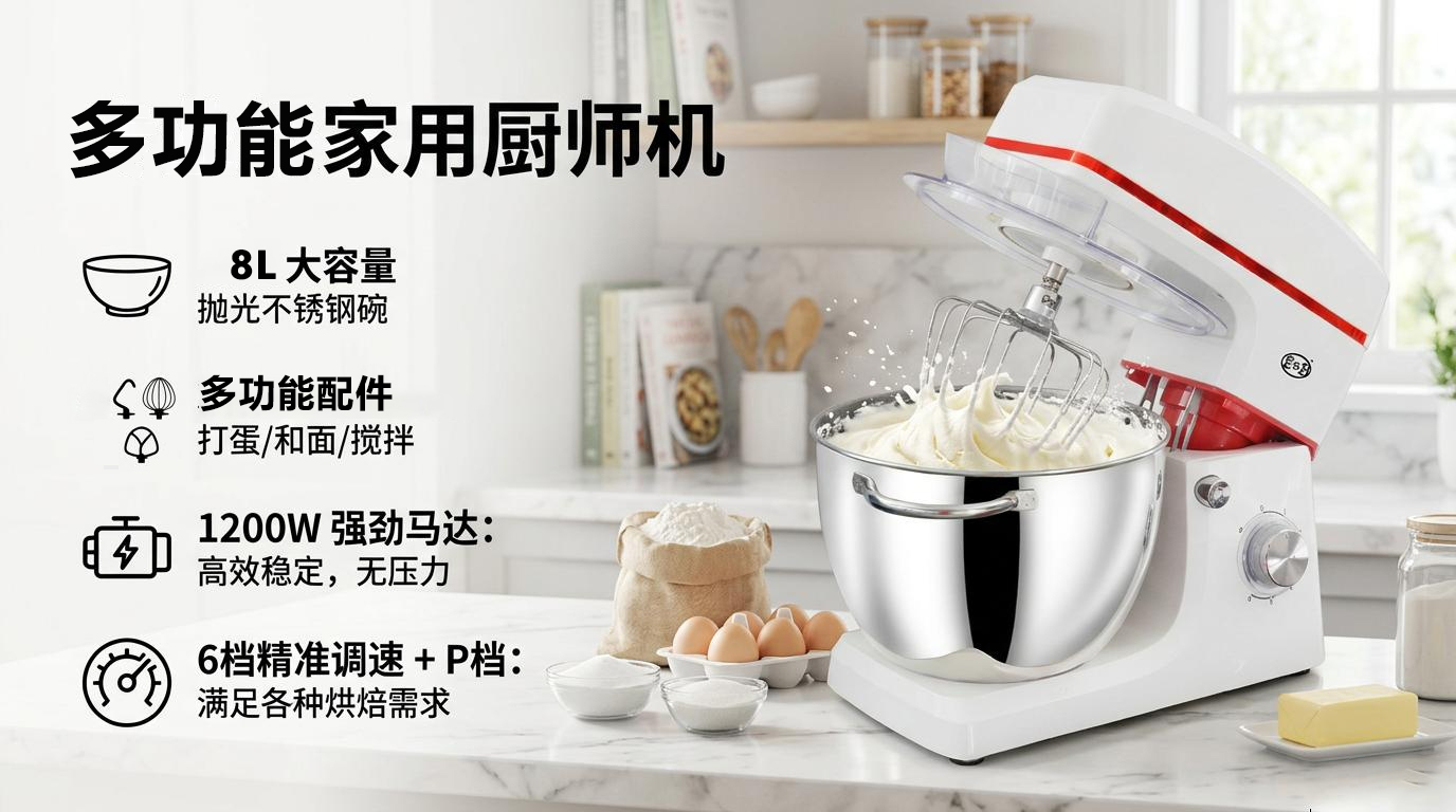 【赠送防塵罩+刮刀+刮板】億貝斯特(EB)8L家用立式搅拌机(EB-2001)